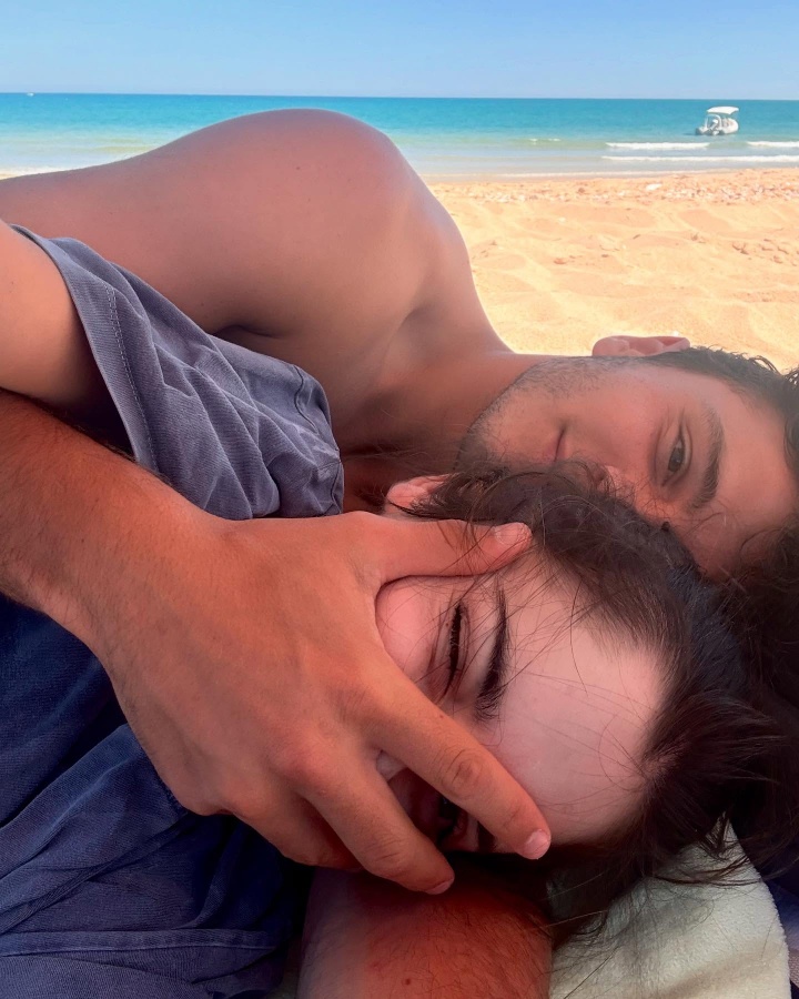 甜😍阳光+大海+沙滩+狗狗,若奥-内维斯和女友一同享受假期